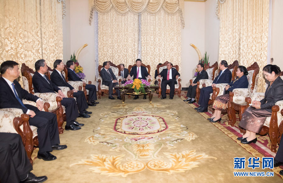 11月13日,中共中央總書(shū)記、國(guó)家主席習(xí)近平在萬(wàn)象會(huì)見(jiàn)老撾人民革命黨中央委員會(huì)前總書(shū)記、前國(guó)家主席朱馬里。 新華社記者 丁林 攝