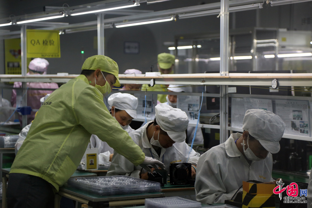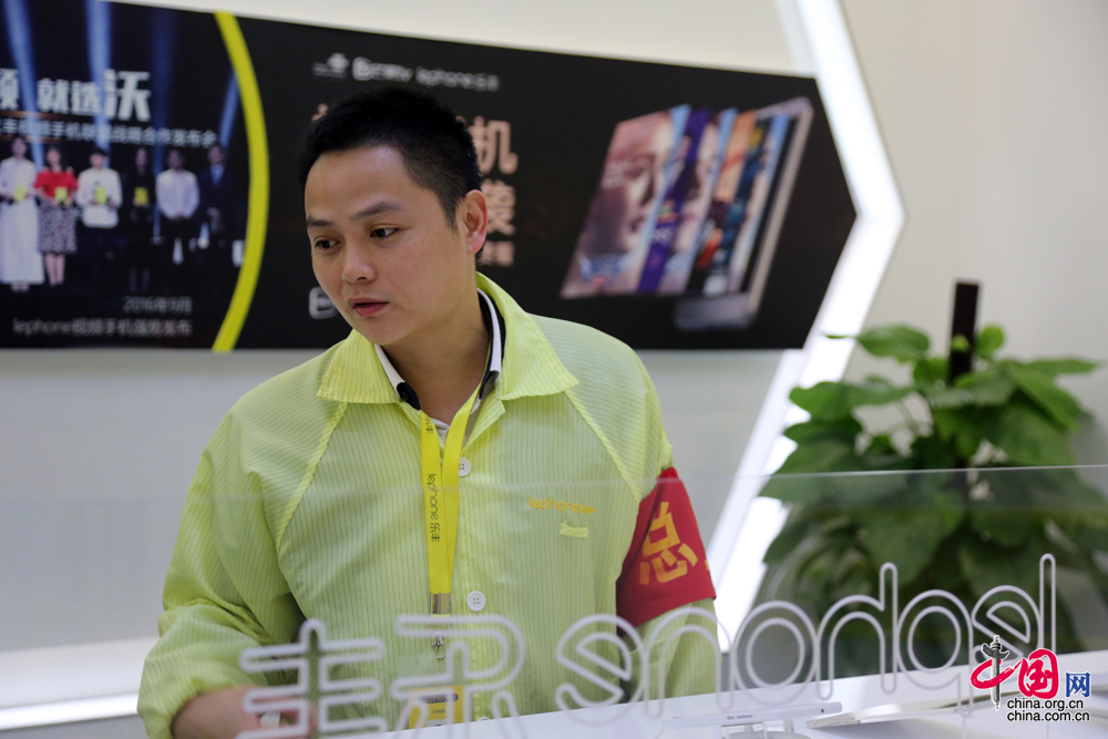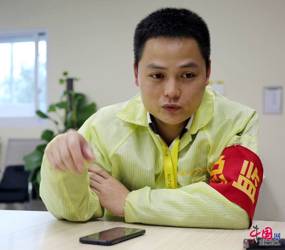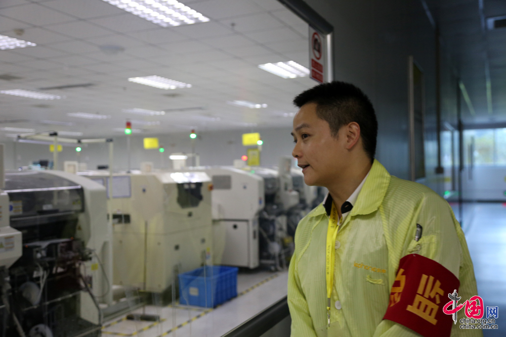 吳福全介紹生產(chǎn)車間裝機(jī)流程。 中國(guó)網(wǎng) 楊楠 攝影