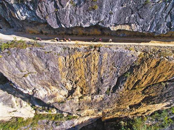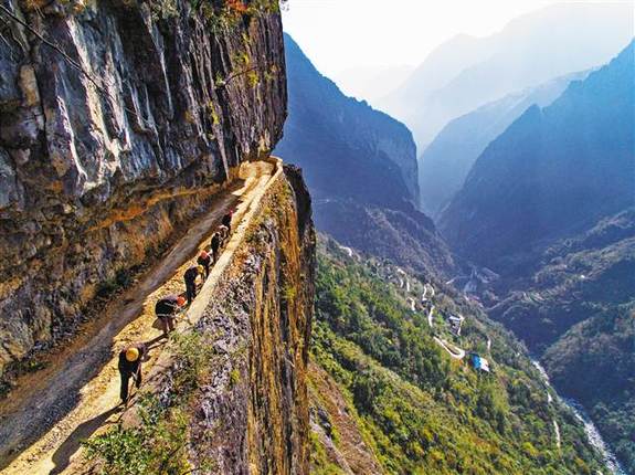 質樸的村民還要在絕壁上鑿出一條幸福路