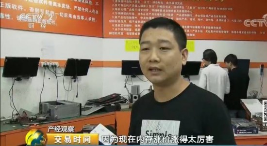 上海贊禾英泰信息科技股份有限公司總經(jīng)理 何崗說,比如說去年同樣的一支內(nèi)存條,賣350塊 他賺10塊錢,那就是360塊,到了今年可能是漲到了720塊,但是他可能還是同樣只能賺10塊錢,了不起賺15塊,因為隨著價格的上漲,實際上供應(yīng)商給的成本,也是在不斷地上漲。