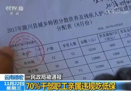 云南一縣民政局超70%干部職工親屬違規(guī)吃低保