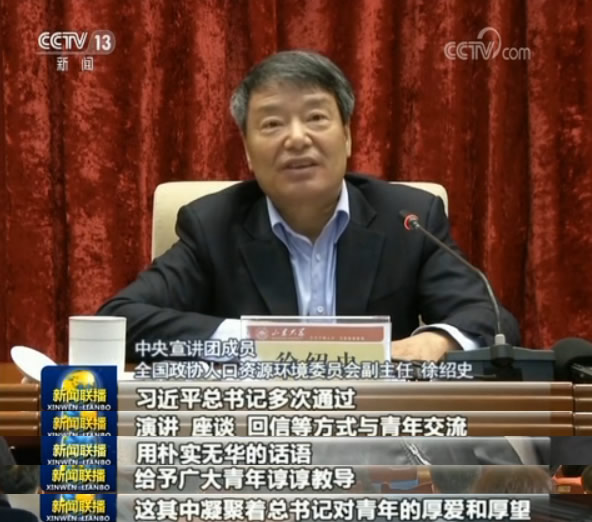21日,中央宣講團成員、全國政協(xié)人口資源環(huán)境委員會副主任徐紹史來到山東大學(xué)作宣講。