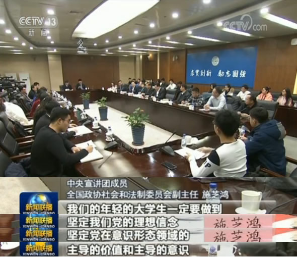 在吉林大學(xué),中央宣講團成員、全國政協(xié)社會和法制委員會副主任施芝鴻理論聯(lián)系實際為師生們宣講。