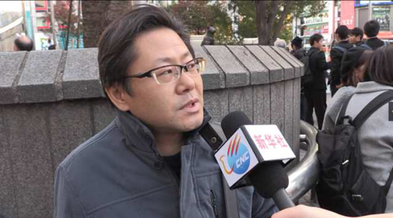圖為一位日本民眾接受采訪。