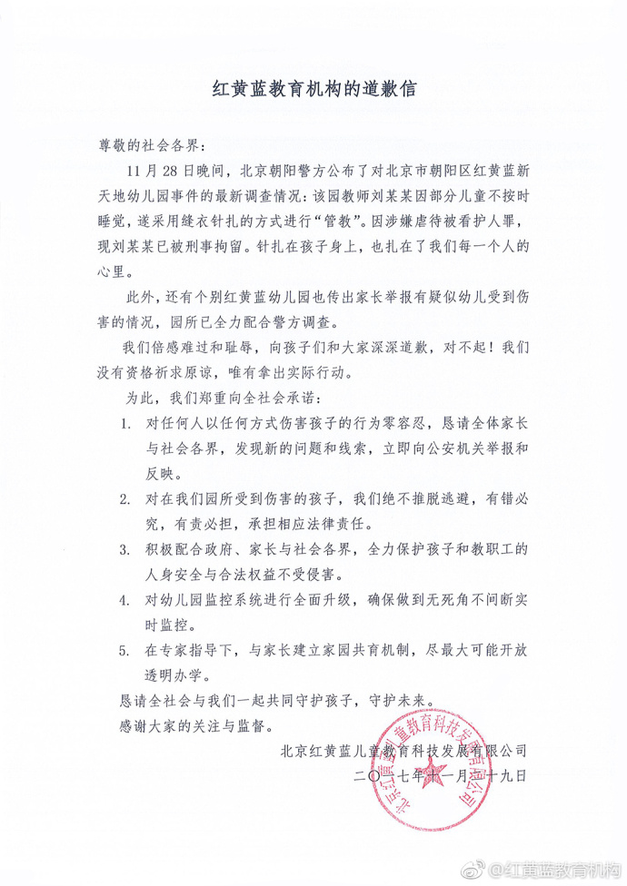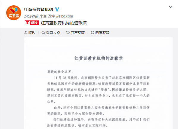 紅黃藍(lán)教育機(jī)構(gòu)發(fā)布道歉信:深感恥辱,將升級監(jiān)控