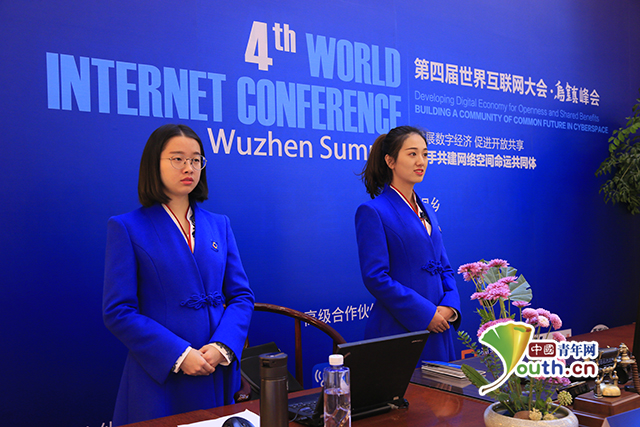 12月2日,第四屆世界互聯(lián)網(wǎng)大會志愿者“小梧桐”在會場服務(wù)。中國青年網(wǎng)記者 宋繼祥 攝