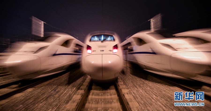 12月1日,部分CRH3A型動車組列車?吭谥袊F路成都局集團有限公司成都動車段。這些列車將在西成高鐵全線通車后正式投入運行。新華社記者 薛玉斌 攝