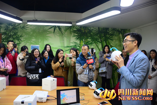 四川新聞網(wǎng)南充12月11日訊(記者周鴻攝影報(bào)道)“我們一起出去玩吧!”“好啊!”今天上午,在南充高新孵化園里,“聚焦‘155’戰(zhàn)略見(jiàn)證大城崛起”2017年全國(guó)網(wǎng)絡(luò)媒體采訪團(tuán)對(duì)這個(gè)可與人類對(duì)話的圓形機(jī)器人十分感興趣!疤蓯(ài)了!
