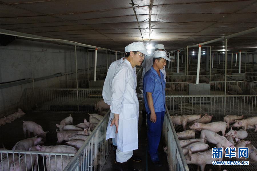 王一成(前)帶領學生在基層養(yǎng)豬場考察(資料照片,2013年8月攝)。新華社發(fā)