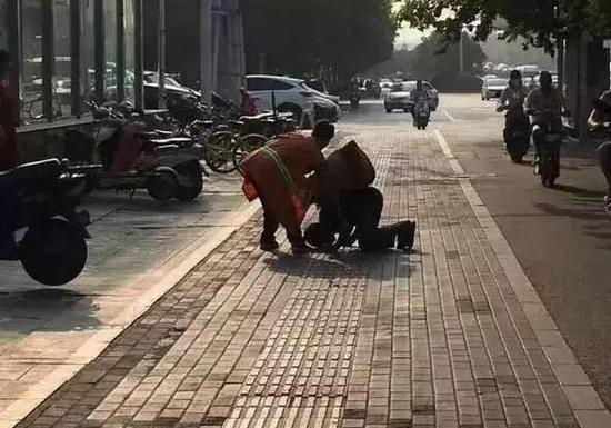 盲人激動得跪地感謝