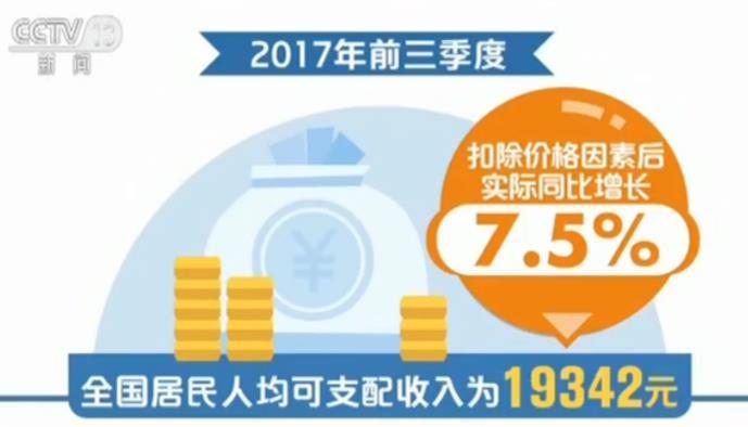 《2018社會(huì)藍(lán)皮書(shū)》統(tǒng)計(jì),2017年前三季度,全國(guó)居民人均可支配收入為19342元,扣除價(jià)格因素后實(shí)際同比增長(zhǎng)7.5%,增速比上年同期上升1.2個(gè)百分點(diǎn)。城鎮(zhèn)居民人均可支配收入27430元,農(nóng)村居民人均可支配收入9778元。城鄉(xiāng)居民人均收入倍差2.81,比上年同期縮小0.01。農(nóng)村居民人均可支配收入增速仍快于城鎮(zhèn)居民。