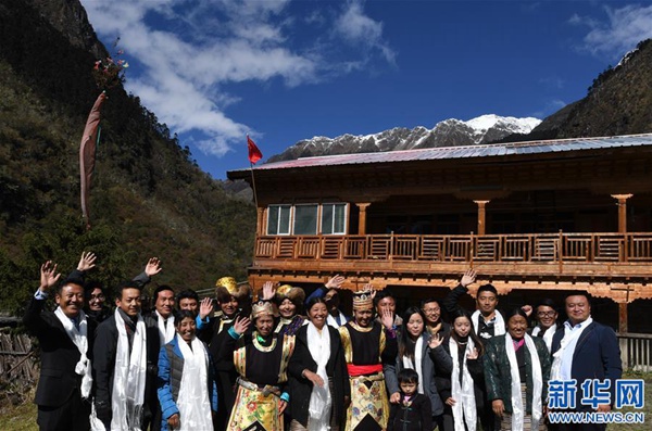 2017年10月29日,收到習(xí)主席回信后,玉麥鄉(xiāng)全體干群合影 圖片來源:新華網(wǎng)
