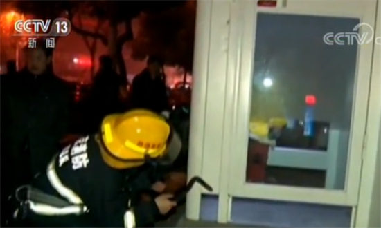 消防隊(duì)員十分鐘就趕到了現(xiàn)場,用撬棍撬開了門鎖。