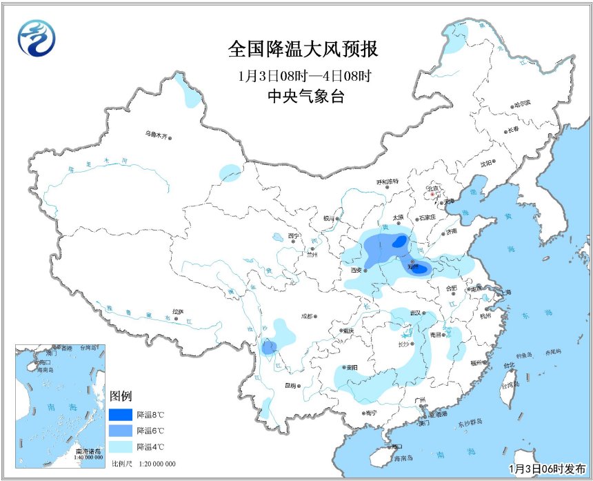 張濤:氣象監(jiān)測(cè)顯示,2日11時(shí)至3日11時(shí),甘肅南部、寧夏中南部、陜西中部、河南中部、湖北西北部出現(xiàn)小雪,局地出現(xiàn)3~4毫米的中雪,積雪深度達(dá)2~4厘米。江蘇、安徽、湖北東部、湖南、貴州等地出現(xiàn)小到中雨,云南西部和南部出現(xiàn)中到大雨。