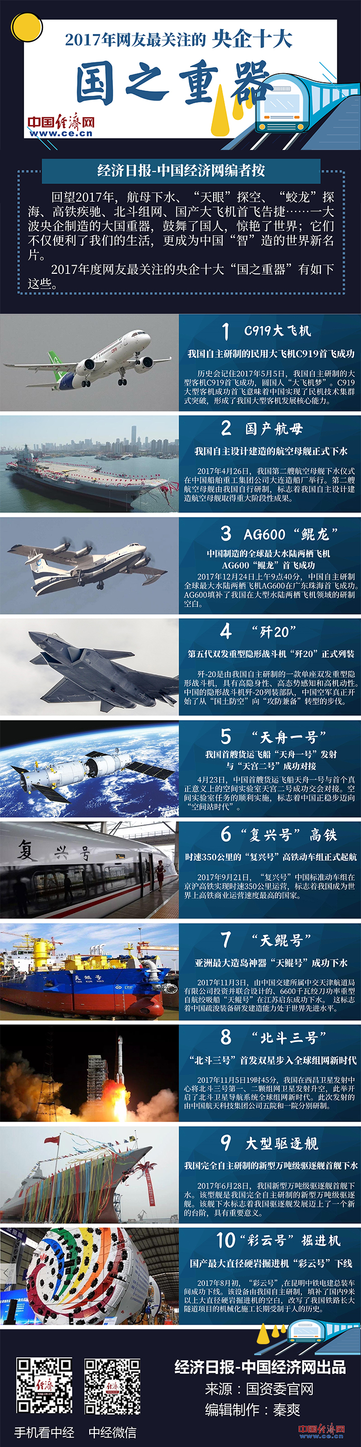 2017年度網(wǎng)友最關(guān)注的央企十大“國(guó)之重器”有如下這些。