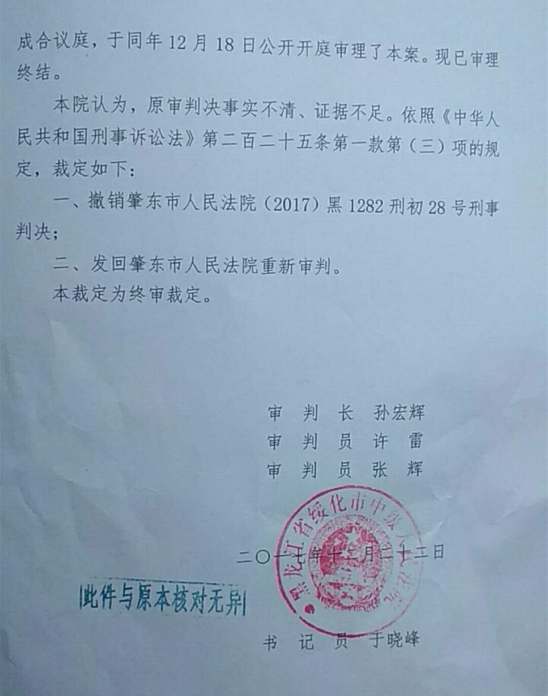 黑龍江肇東蹊蹺敲詐勒索案:事實(shí)不清,證據(jù)不足,發(fā)回重審