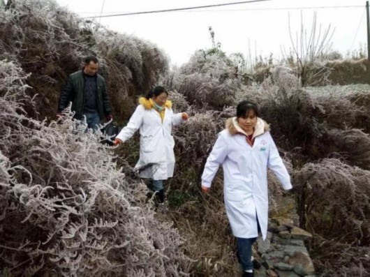 兩位白衣天使爬山進村的這一幕