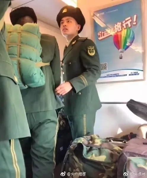 前兩天,@央廣軍事 發(fā)微博稱,一批剛從軍校畢業(yè)的學(xué)員登上了開往分配地的列車,幾乎占滿整個(gè)車廂。一些沒有買到坐票的乘客怨聲載道,嘟囔著為什么當(dāng)兵的不給讓座。