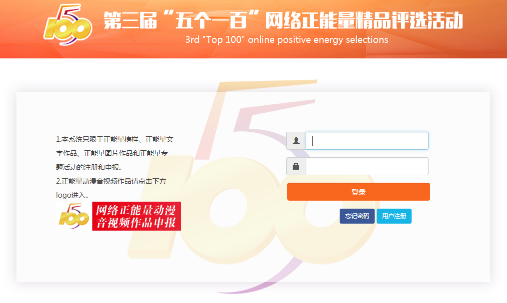 第三屆“五個一百”網(wǎng)絡(luò)正能量精品評選活動申報頁面