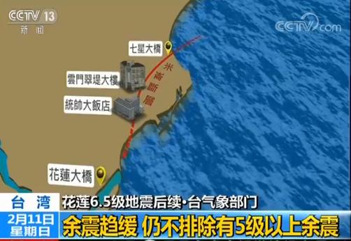 臺(tái)灣花蓮6日深夜發(fā)生6.5級(jí)強(qiáng)震,造成重大災(zāi)情。而且在此之后已經(jīng)發(fā)生了170多次余震;雖然從昨天開始余震趨緩,但臺(tái)灣氣象部門表示,未來1至2周內(nèi),仍不排除有5級(jí)以上的余震。來看臺(tái)灣媒體的報(bào)道。