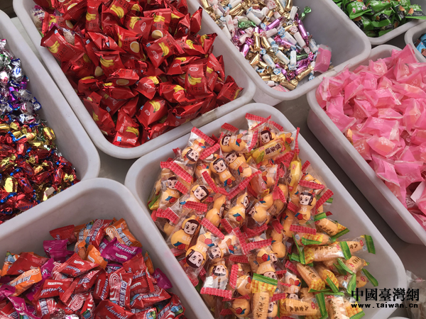 2月14日,邯鄲市永年區(qū)茹佐村年貨市場中一個攤位上五顏六色的糖果。(中國臺灣網(wǎng) 張亞靜 攝)