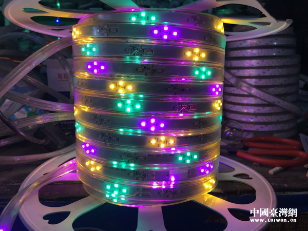 2月14日,邯鄲市永年區(qū)茹佐村年貨市場上待售賣的彩色閃燈。(中國臺灣網(wǎng) 張亞靜 攝)