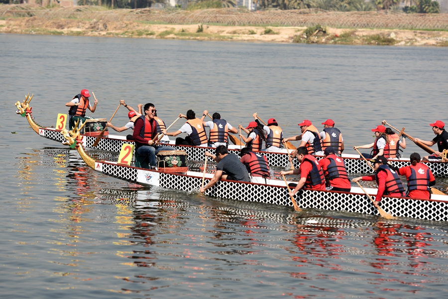 “歡樂春節(jié)”尼羅河龍舟大賽在埃及開羅尼羅河畔舉行。(圖片來源:新華社)