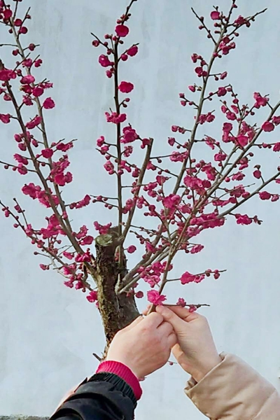 牽手媽媽,看了新春里的梅花