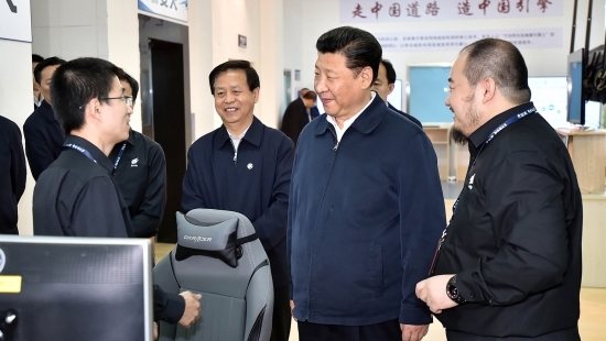 習(xí)近平總書記強調(diào),要深入貫徹黨的十九大精神,增強使命感和責任感,真抓實干,緊抓快干,不斷開創(chuàng)新時代軍民融合深度發(fā)展新局面。圖為習(xí)總書記在視察調(diào)研中聽取民企科技人員介紹網(wǎng)絡(luò)安全技術(shù)研發(fā)情況。