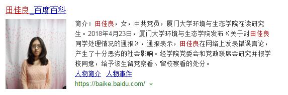 出了這樣的人,廈門大學也必須做出相應處分。但是我覺得矛頭不需要指到廈門大學身上,因為吸收這種人入黨幾乎是全國高校都在做錯的事。田佳良被扒出來的“光輝事跡”中,很多都是在遼寧老家干出來的,三觀也是在東北形成的。不是地域黑,但是在東北讀過書的都知道當地高校官僚氣息多么嚴重,我對田同學論文嚴重抄襲卻依然被保送到廈大的事并不感到奇怪。廈大這次算是躺槍,政審不是廈大做的,也不知道會招進這樣的貨色。但是廈大理虧在只是將田佳良留黨察看,處罰太輕,高校學生黨員都知道這個決定意味著什么,只要在接下來的半年到兩年的時間里,田佳良乖乖閉嘴好好使用微博,她就能繼續(xù)做科研被保送,最終取消對她的黨內處分。