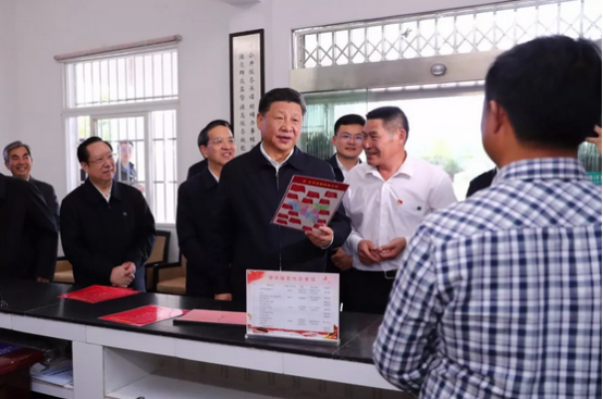 長江云4月26日報道 4月24日,習(xí)近平總書記來到宜昌,深入長江沿岸考察。當(dāng)天下午,在宜昌市夷陵區(qū)太平溪鎮(zhèn)許家沖村便民服務(wù)室,他饒有興致地聽了幾位村干部唱起當(dāng)?shù)氐臐O鼓調(diào)。(據(jù)新華社“新華視點”微博報道)