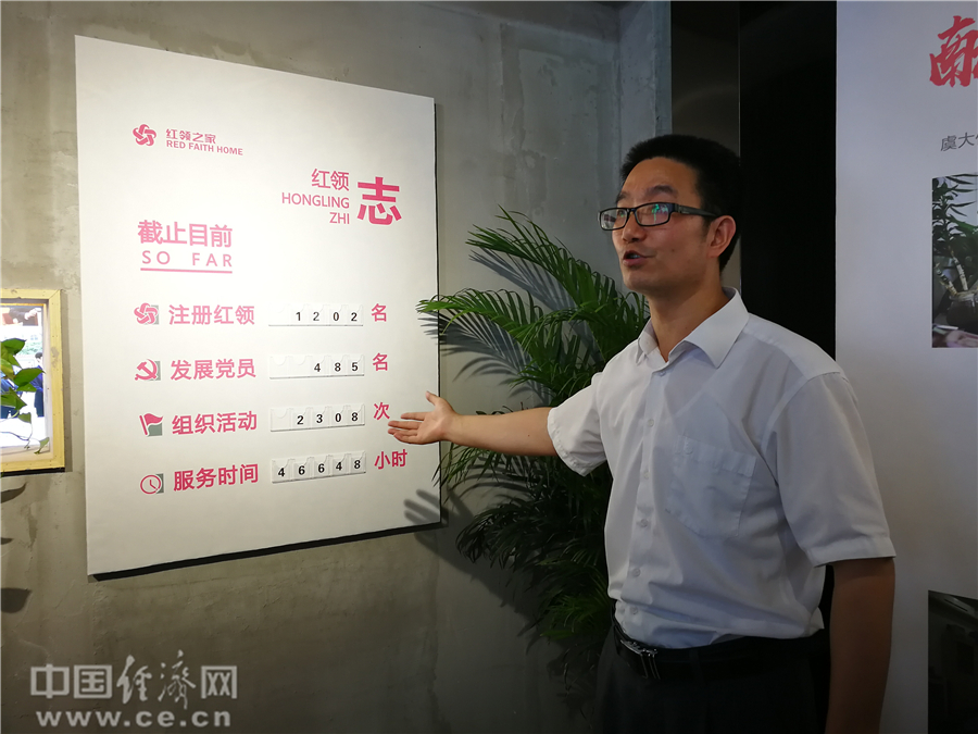 “紅領(lǐng)之家”黨支部書記陳軍浩介紹黨員情況。經(jīng)濟日報-中國經(jīng)濟網(wǎng)記者 宋雅靜攝