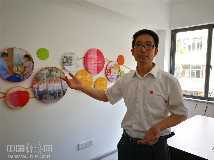 陳軍浩向記者介紹”紅領(lǐng)之家”發(fā)展歷程。經(jīng)濟日報-中國經(jīng)濟網(wǎng)記者 宋雅靜攝