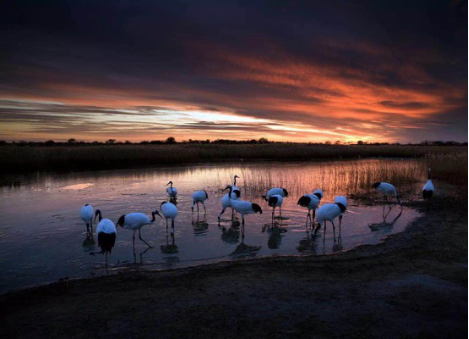 吉林向海國(guó)家級(jí)自然保護(hù)區(qū)總面積1054.67平方公里,這里是沼澤分布最廣,最集中的地區(qū)之一,是重要的候鳥繁殖和遷徙途中的補(bǔ)給站。鳥類293種,其中包括了6種鶴類,和10種國(guó)家一級(jí)保護(hù)動(dòng)物。在世界上僅有的近2000只丹頂鶴中,最多時(shí)有200多只在這里繁衍生息。