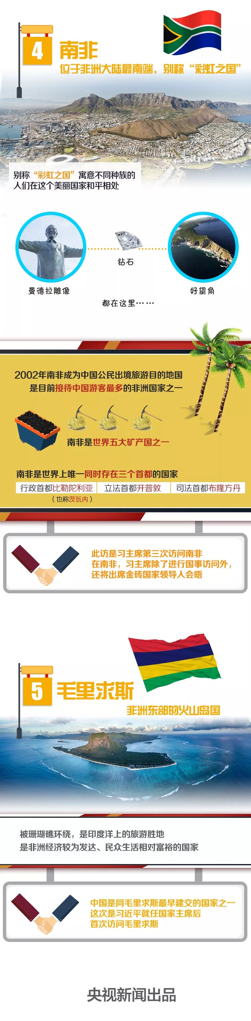 季夏之月,赴萬(wàn)里之約。7月19日至28日,習(xí)近平主席將對(duì)阿聯(lián)酋、塞內(nèi)加爾、盧旺達(dá)和南非進(jìn)行國(guó)事訪問(wèn),出席在南非約翰內(nèi)斯堡舉行的金磚國(guó)家領(lǐng)導(dǎo)人第十次會(huì)晤,過(guò)境毛里求斯并進(jìn)行友好訪問(wèn)。