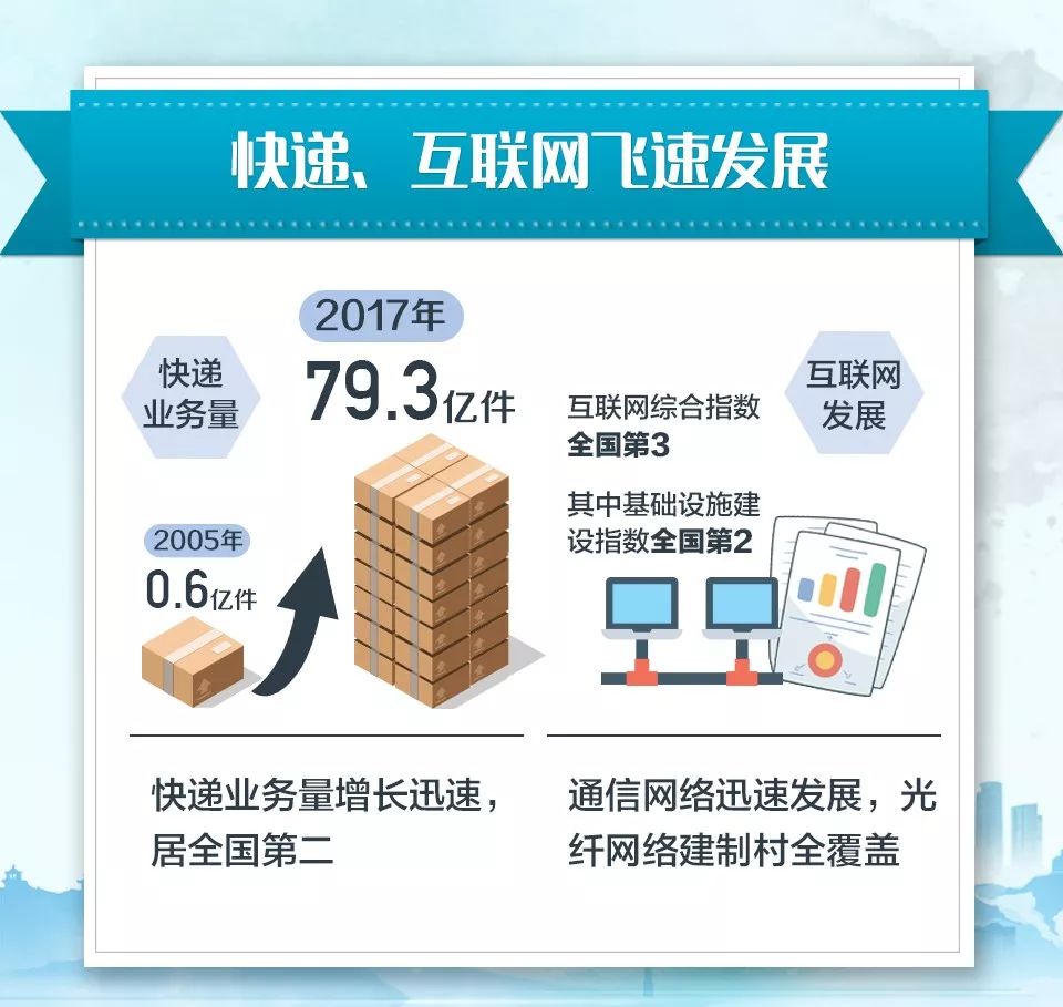 基礎(chǔ)設(shè)施方面,浙江推進(jìn)的速度很快。到2017年,浙江全省擁有民航機(jī)場(chǎng)7座;鐵路營(yíng)業(yè)里程2587公里。值得一提的是,2016年12月23日,投資400多億元的杭紹臺(tái)高鐵開(kāi)工,這是國(guó)內(nèi)首條民資控股鐵路。