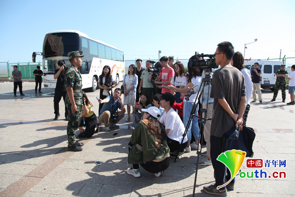 采訪團(tuán)在新疆生產(chǎn)建設(shè)兵團(tuán)阿拉山口市邊檢站采訪。天山網(wǎng)編輯 楊運(yùn)鵬 攝
