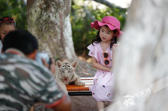 小朋友和白虎寶寶合影。首席記者 雷其霖 攝