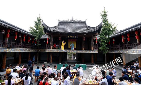 一邊喝著茶一邊聽著傳統(tǒng)的折子戲,別有一番風(fēng)味。記者 謝鵬 攝