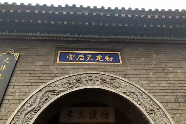 天津得名于“天子津渡”,可見(jiàn)天津的位置一直與水系有關(guān)。天津既有沿海港口,又有內(nèi)陸的海河與京杭大運(yùn)河,水系發(fā)達(dá)。宋元以來(lái),天津是海運(yùn)漕糧的終點(diǎn),也是轉(zhuǎn)入內(nèi)河裝卸漕糧的碼頭。至元朝年間,由于當(dāng)時(shí)漕船海難不斷發(fā)生,于是元泰定三年(1326年),皇帝下令在天津海河三岔河口建天后宮(當(dāng)時(shí)叫天妃宮),供人們奉祀海神天后,以保佑行船平安,天津媽祖文化逐漸興盛。每有漕運(yùn),船工及護(hù)航的官員們都要在出;蜾罴Z到達(dá)時(shí),向天后祈福求安。慢慢地,周?chē)傩找捕冀栌蓩屪嫫砀!⑶笞、保平順,于是,天津成為北方傳承媽祖文化的勝地。以天后宮為中心,隨著漕運(yùn)影響的擴(kuò)展,往來(lái)的人們紛紛在天后宮周?chē)顒?dòng)、聚集,造就了天津今日古文化街所在地的繁榮。