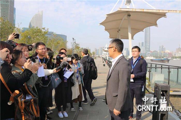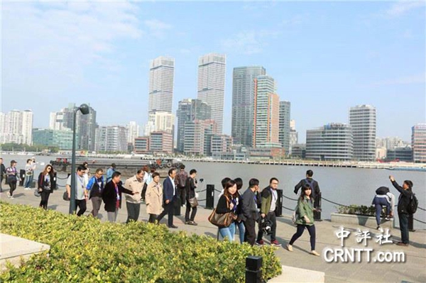 兩岸新媒體大陸行上海聯(lián)合采訪來到位于上海浦東的東岸濱江公共空間。(圖片來源:中評社)