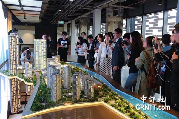 兩岸媒體觀看浦江東岸改造升級介紹短片。(圖片來源:中評社)