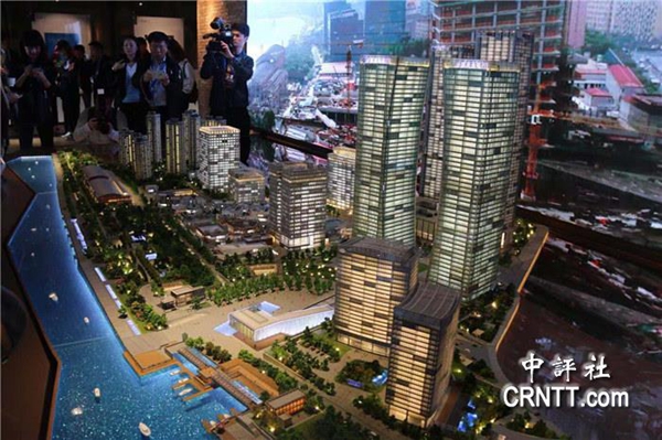 陸家嘴濱江金融城建設(shè)沙盤。(圖片來源:中評社)