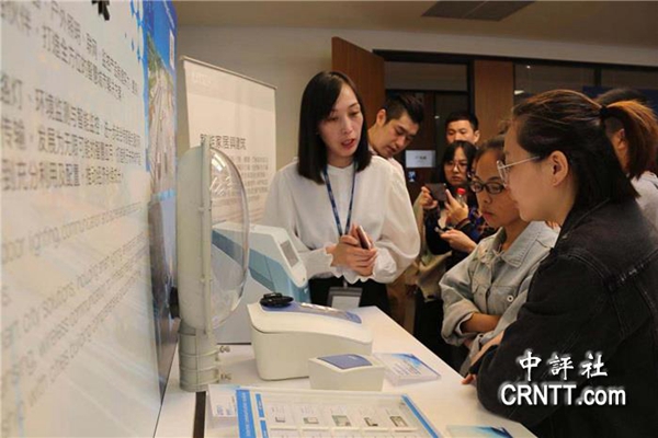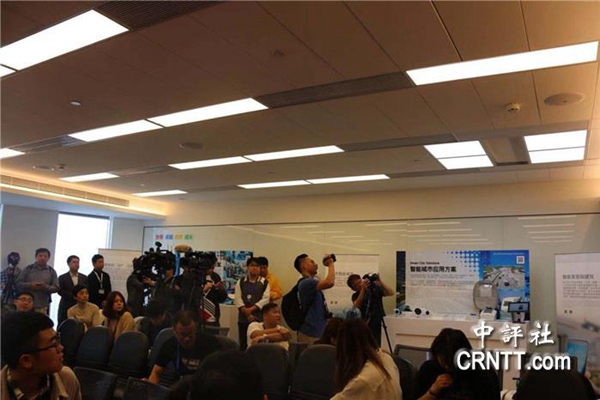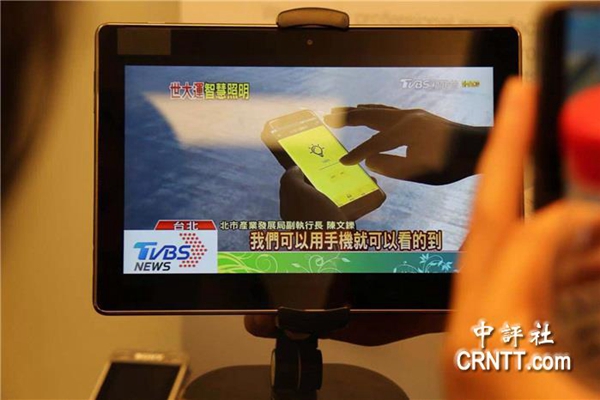 工作人員演示智能照明吸人眼球。(圖片來源:中評社)