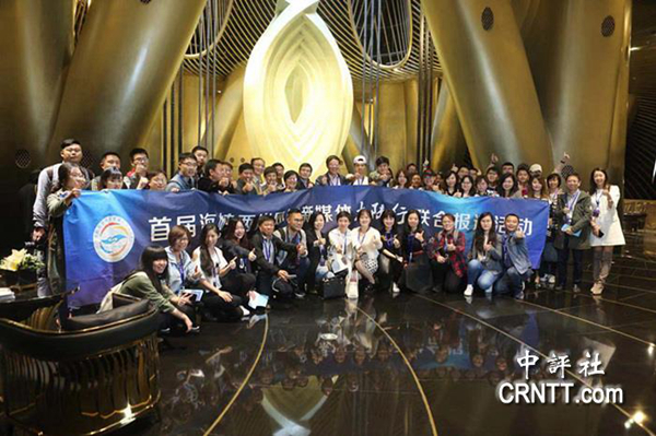 兩岸新媒體在“上海之巔”合影留念。(圖片來源:中評社)