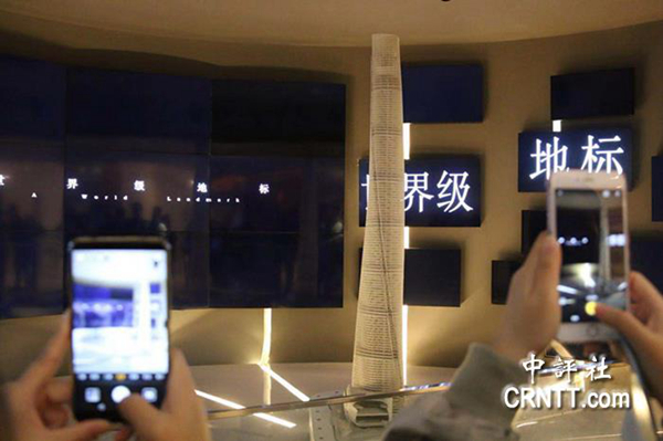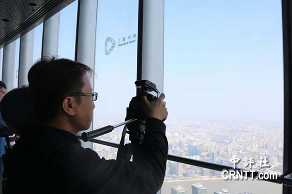 兩岸媒體記者從上海中心119層俯瞰城市風光。(圖片來源:中評社)