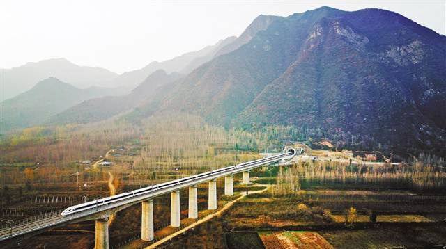 2017年12月6日,西安至成都的高鐵列車呼嘯穿過秦巴山脈,開辟了中國西部發(fā)展新格局。(新華社記者 劉瀟 攝)