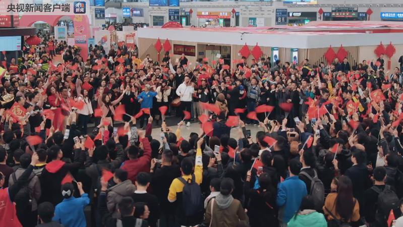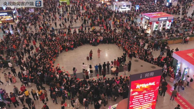 清新悅耳的演奏,深情激昂的歌唱,從小家的團聚幸福到大家的繁榮昌盛,快閃活動讓旅客驚喜感動之余,中央廣播電視總臺快閃現(xiàn)場為了旅客送“!,溫暖回家路。