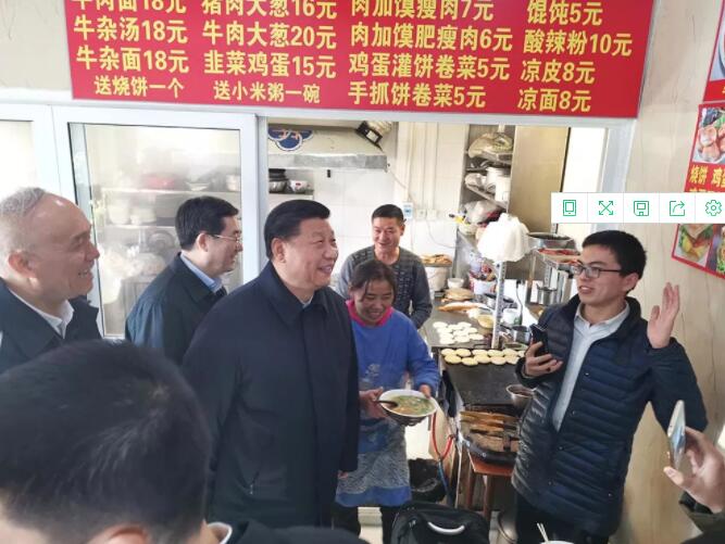返回途中,習(xí)近平臨時下車,走進一家路邊小餐館,同店主和顧客熱情交流,了解生意怎么樣、食材哪里來、味道好不好,并祝他們生意興隆。