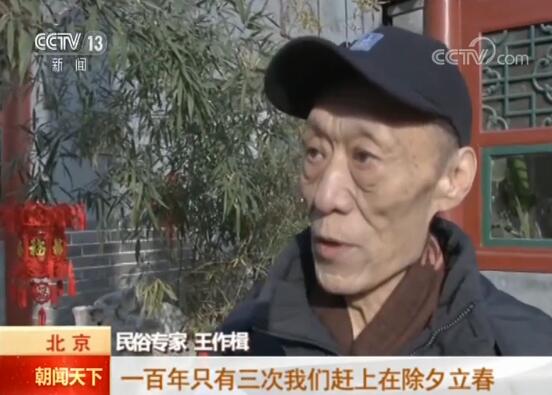 民俗專家 王作楫:一百年只有三次我們趕上在除夕立春,既是節(jié)氣的開始又是春節(jié)的開始,倆春落一塊這叫六合同春,寓意家庭和睦、社會和諧、國家安定團結。
